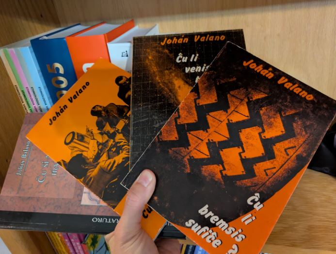 Rafa, Brandono kaj Hanso priparolas tradukadon, precipe sian propran kaj literaturan. Ho, kaj ankaŭ fonklojn.