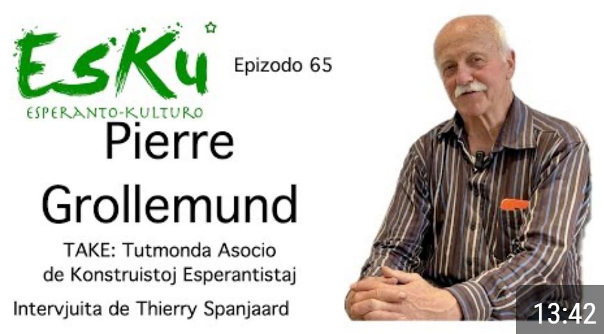 Pierre Grollemund estas la sekretario de TAKE: Tutmonda Asocio de Konstruistoj Esperantistaj. En ĉi tiu video, li klarigas pri la diversaj agadoj kaj eldonoj de la asocio. Li ankaŭ prezentas diversajn demandojn pri fakaj vortoj en la lingvo.