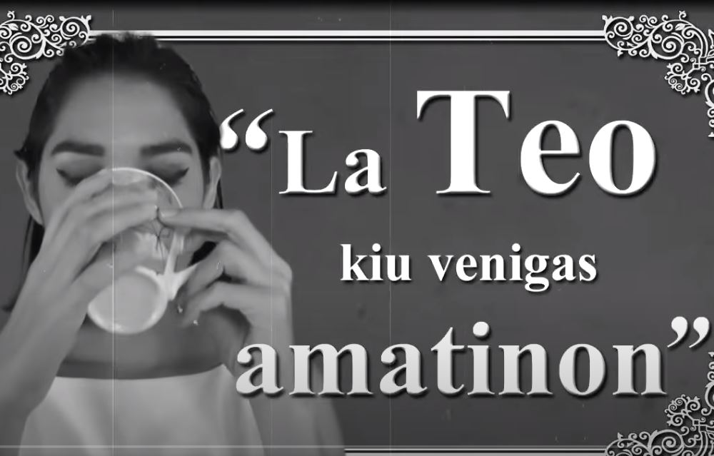 ''La Teo Kiu Venigas Amatinon” estas la unua fikcia filmeto de GLOBETO. Ĉi tiu videaĵo estis farita por partopreni konkurson de Ĉina Radio Internacia, kies temo estis “Teo Kaj Amo”, kaj gajnis la unuan premion.