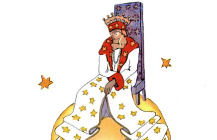 Li trovi¸is en la regiono de asteroidoj 325, 326, 327, 328, 329 kaj 330. Li do unue vizitis ilin, por tie serçi okupon kaj por kleriĝi. La unua estis lo¸ata de reĝo. Ĉi tiu, vestita per purpuro kaj ermeno, sidis sur tre simpla, tamen majesta trono.