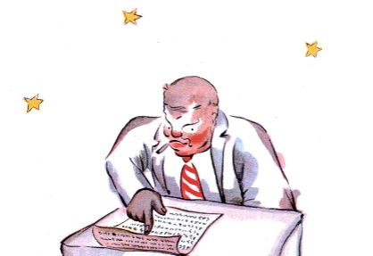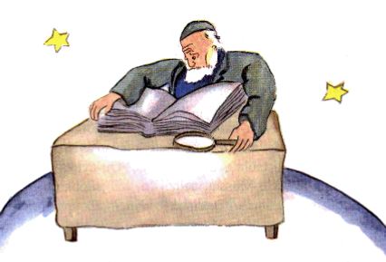 La sesa planedo estis dekoble pli vasta. Ĝi estis loĝata de maljuna sinjoro, kiu verkis dikegajn librojn.
