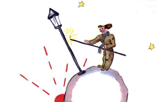 La kvina planedo estis tre kurioza. Ĝi estis la plej malgranda el ĉiuj. Tie estis ¸uste nur sufiĉa spaco por loki unu stratlanternon kaj unu lanterniston.