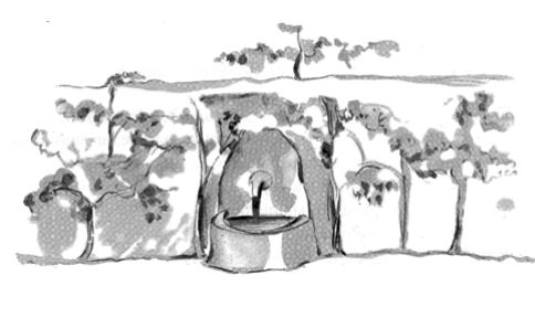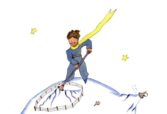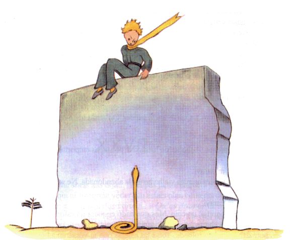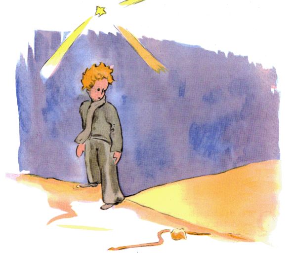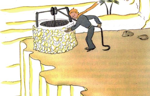 Apud la puto estis ruino de manova ŝtona muro. Kiam la sekvantan tagon vespere mi revenis de mia laboro, mi ekvidis de malproksime mian etan princon sidanta tie supre, kun kruroj pendantaj. Kaj mi aûdis lin paroli: ”Ĉu vi do ne memoras pri tio? Tio estis ne ĝuste ĉi tie!”