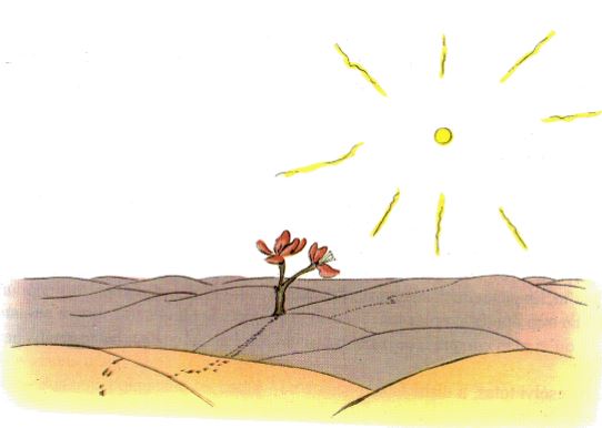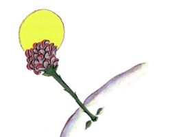 La eta princo trairis la dezerton kaj renkontis nur unu floron. Floron kun tri petaloj, tute neniom signifan. ”Bonan matenon!” diris la eta princo. ”Bonan tagon!” diris la floro. ”Kie estas homoj?” ĝentile demandis la eta princo.