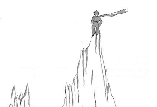 La eta princo suprengrimpis sur alta monto. La solaj montoj, kiujn li iam konis, estis la tri vulkanoj, kies supro atingas la altecon de liaj genuoj.