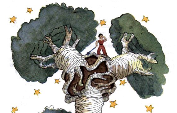 Ĉiutage mi eksciis ion pri la planedo, lia foriro kaj lia vojaĝo. Tio okazis tute trankvile per hazardaj rimarkoj. Tiel la trian tagon mi ekkonis la dramon de la baobaboj.